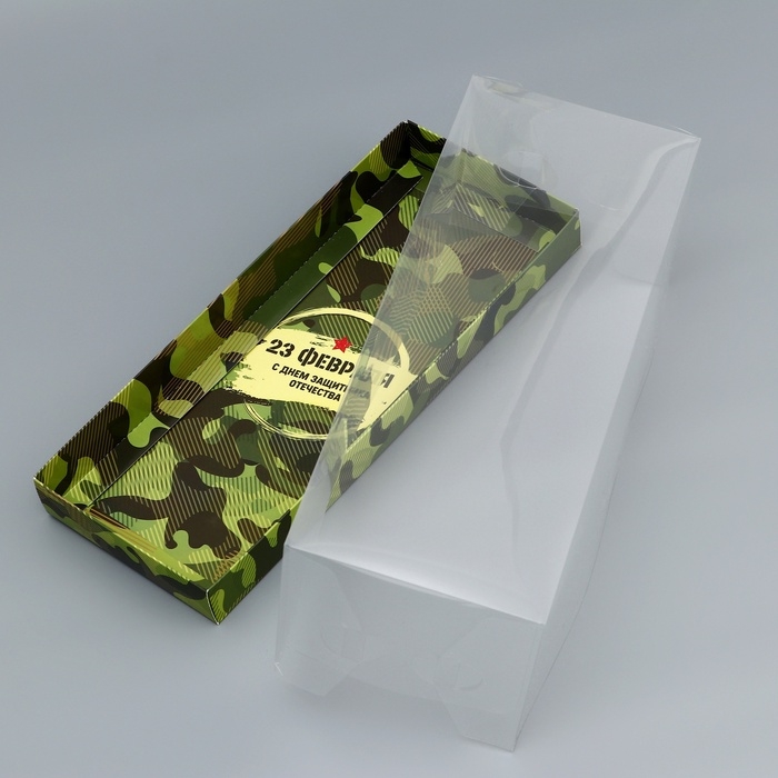 Коробка с прозрачной крышкой под рулет, "23 февраля", 30 х 12 х 12 см. Кондитерская упаковка