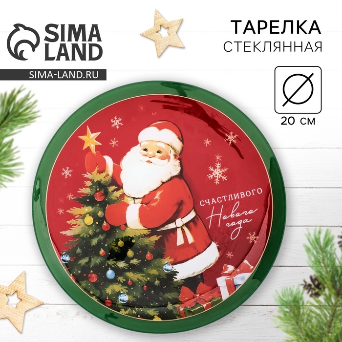Тарелка новогодняя стеклянная «Счастливого нового года», 20 см