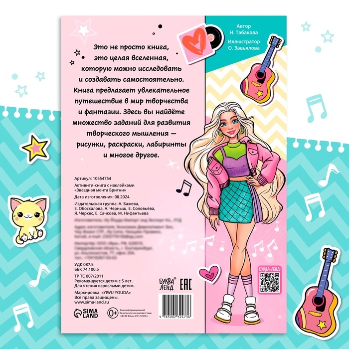 Активити-книга с наклейками «Звёздная мечта Бритни», более 100 наклеек, 5+