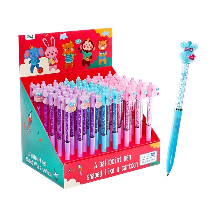 Ручка шариковая-прикол, поворотная, Зайчик блеск МИКС