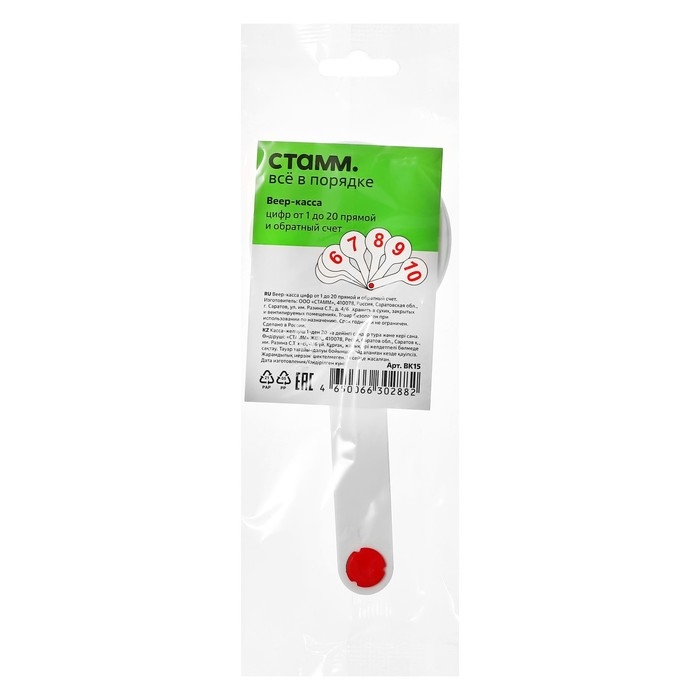 Веер-касса, цифры от 1 до 20 прямой и обратный счет, Стамм, пакет с европодвесом