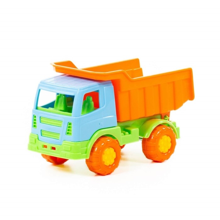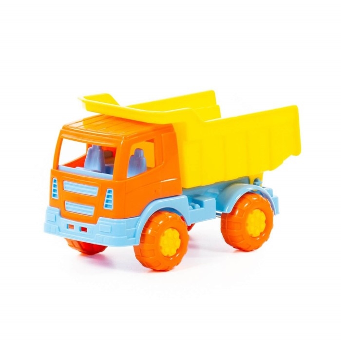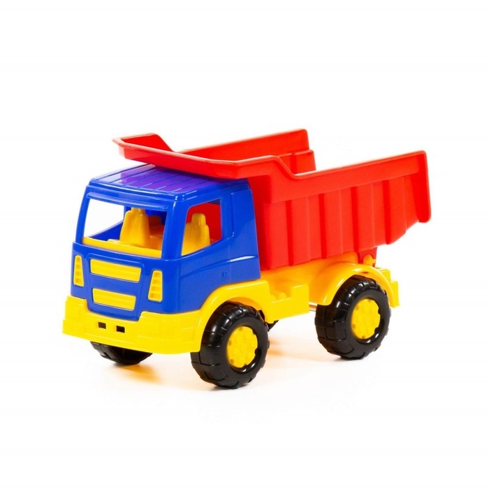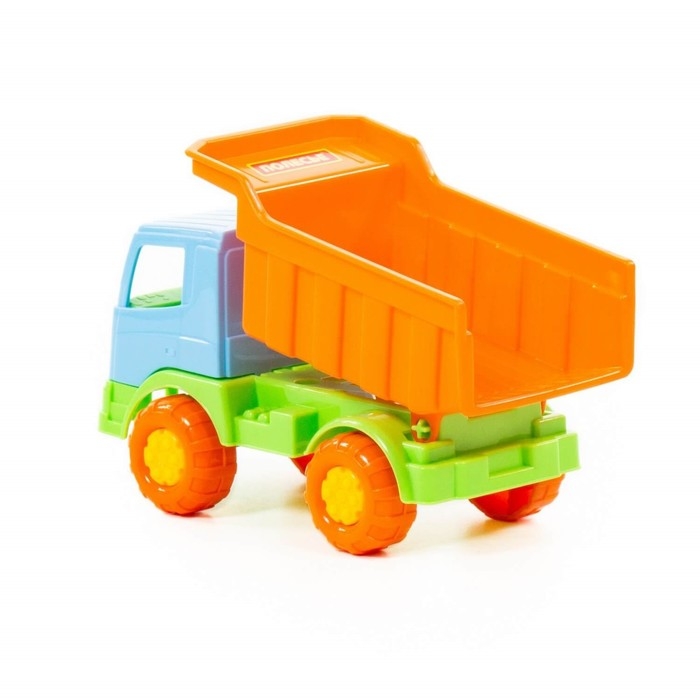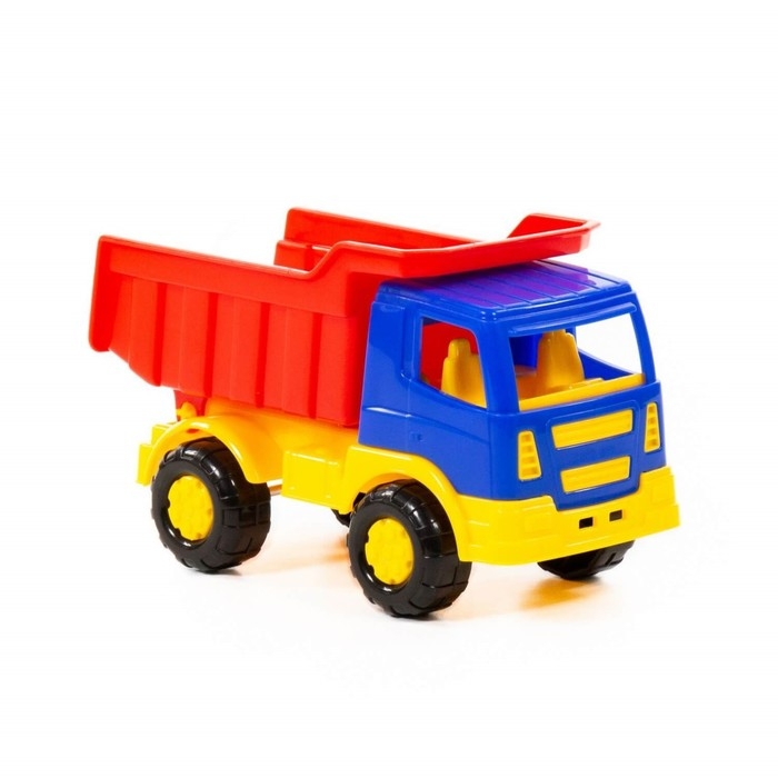 Самосвал ТМ «Полесье» порадует маленьких любителей спецтехники. Он оснащён вместительным кузовом, в который можно засыпать песок или камушки. Пластиковые колёса транспорта не поцарапают паркет или ламинат в квартире. При желании ребёнок сможет откинуть кузов, чтобы высыпать всё содержимое.