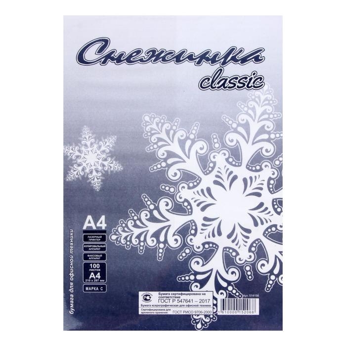 Бумага А4, 100 листов "Снежинка", 80г/м2, белизна 146% CIE, класс С, в т/у плёнке (цена за 100 листов)