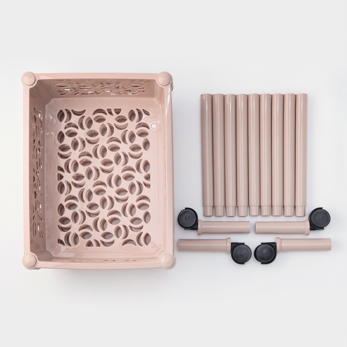 Полка напольная узкая 4-х секционная, на колёсиках, цвет чайная роза