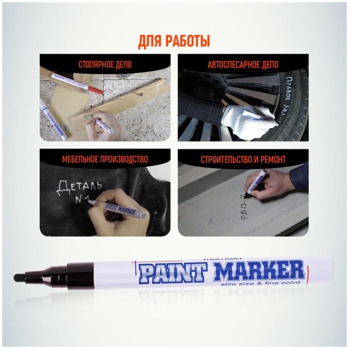Paint Marker подходит для реставрации дефектов на бытовой технике, обуви, кузове автомобиля, а также надписей на каменных плитах. Маркер-краска MunHwa имеет широкое применения в дизайне, декорировании и оформлении. Корпус маркера изготовлен из прочного алюминия. Клапанный механизм пишущего узла исключает растекание и разбрызгивание краски, преждевременное пересыхание маркера, срок годности 5 лет.