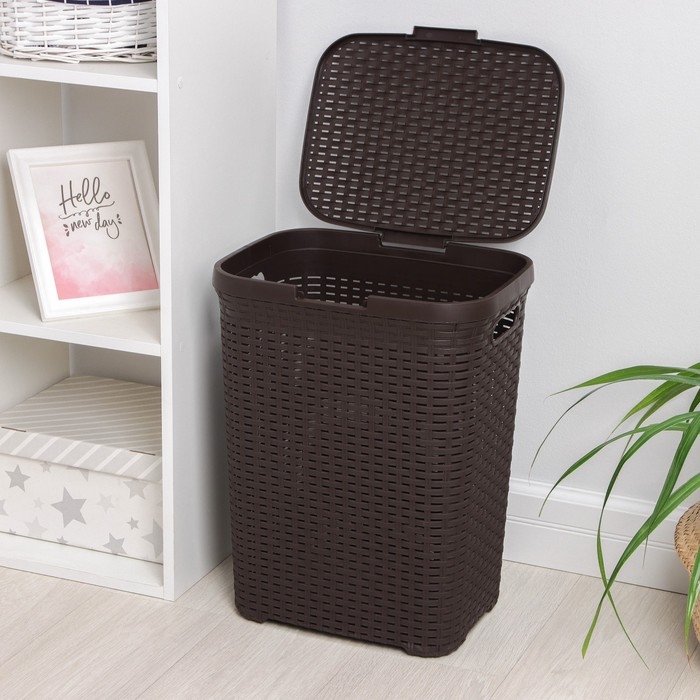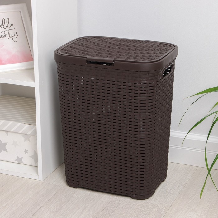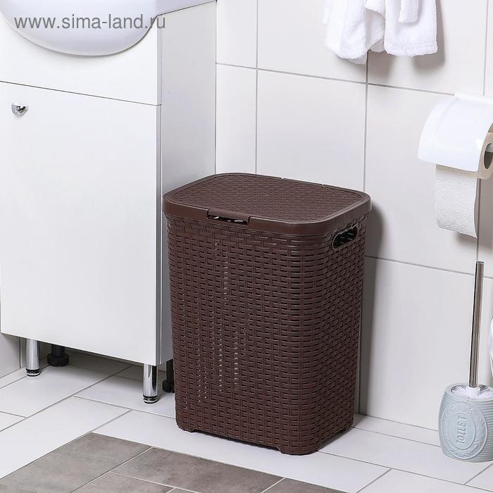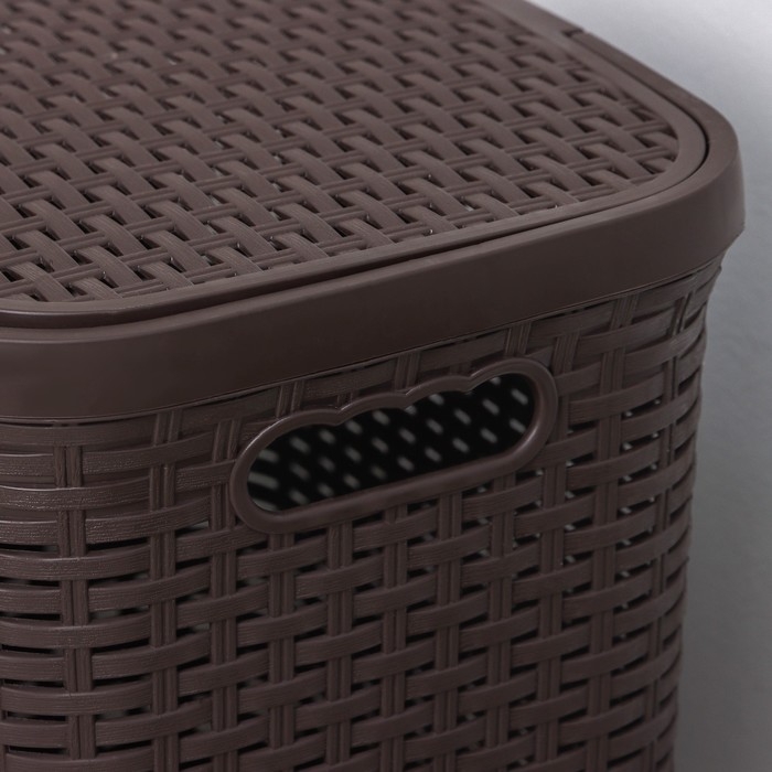 Корзина бельевая с крышкой «Ротанг», 40 л, 37×29×48 см, цвет коричневый