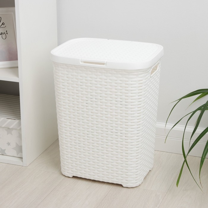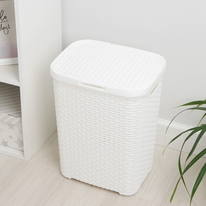 Корзина бельевая с крышкой «Ротанг», 40 л, 37×29×48 см, цвет белый