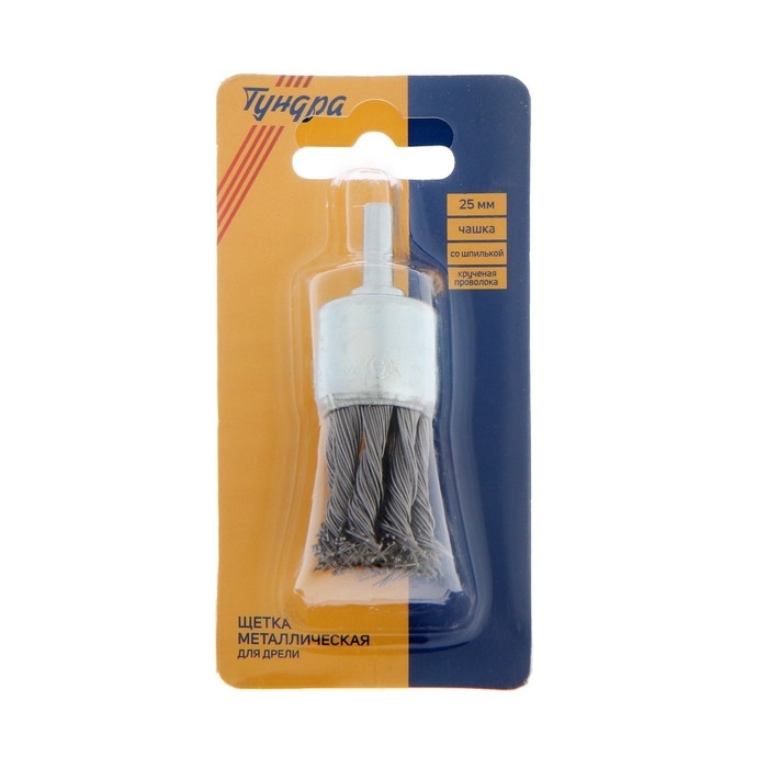 Щетка металлическая для дрели ТУНДРА, со шпилькой, крученая проволока, "чашка", 25 мм