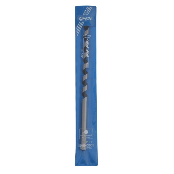 Сверло по дереву шнековое ТУНДРА, шестигранный хвостовик, 10 х 230 мм