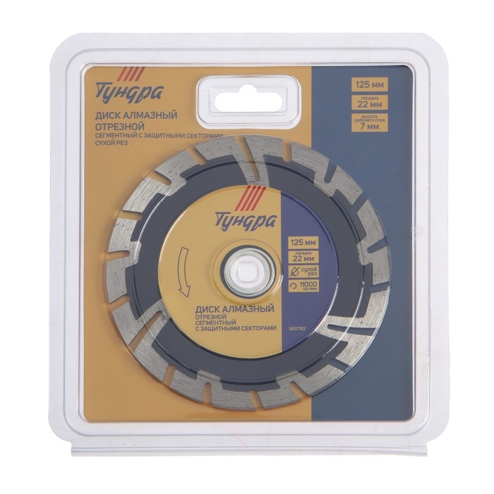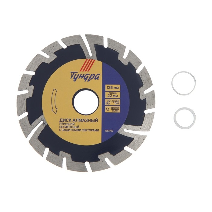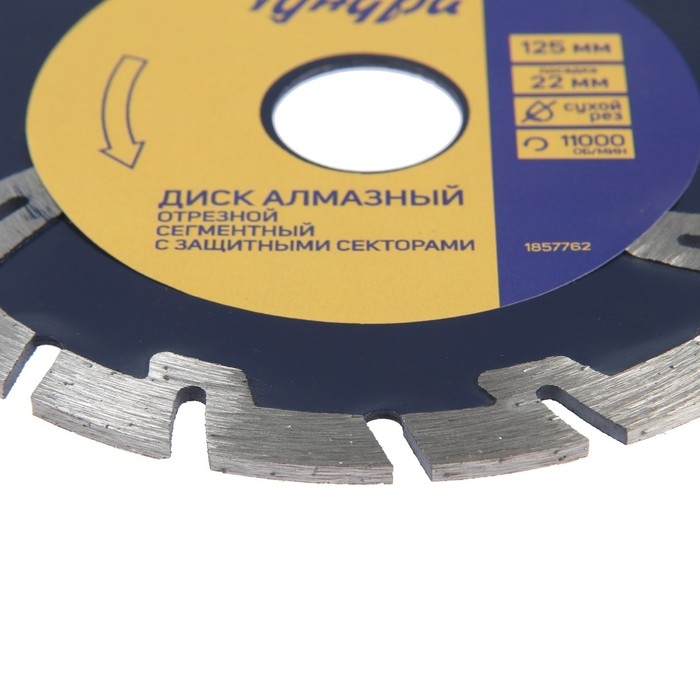 Диск алмазный отрезной ТУНДРА, сегментный с защитными секторами, сухой рез, 125 х 22 мм