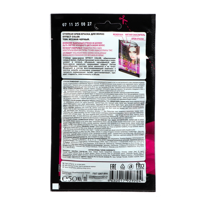 Cтойкая крем-краска для волос Effect Сolor тон иссиня-черный, 50 мл