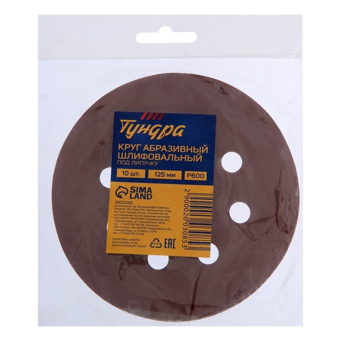 Круг абразивный шлифовальный под "липучку" ТУНДРА, перфорированный, 125 мм, Р600, 10 шт.