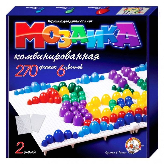 Мозаика круглая, 270 элементов по 10, 15, 20 мм, 6 цветов, 2 платы