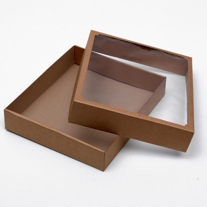 Коробка сборная без печати крышка-дно бурая с окном 37 х 32 х 7 см