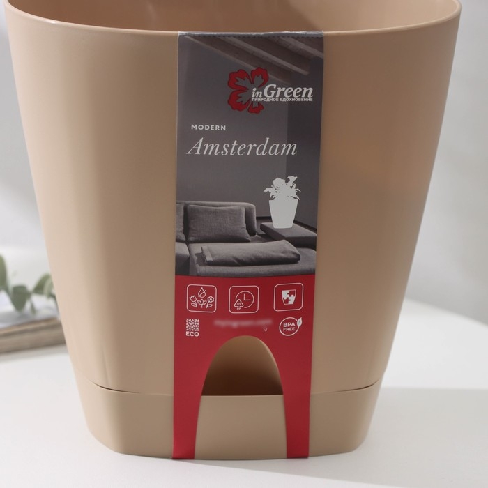 Горшок для цветов с прикорневым поливом Amsterdam, 4 л, цвет молочный шоколад
