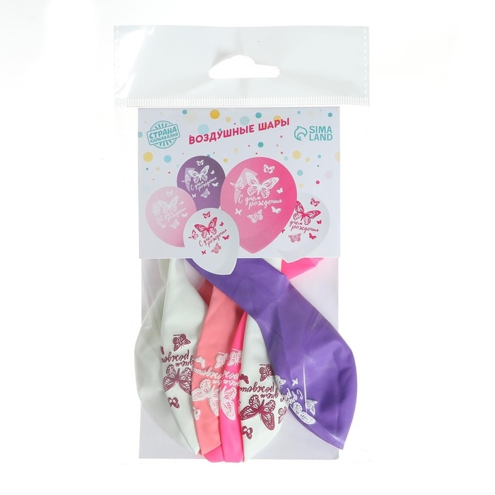Воздушный шар латексный 12" «С днём рождения. Бабочка», 5 шт.