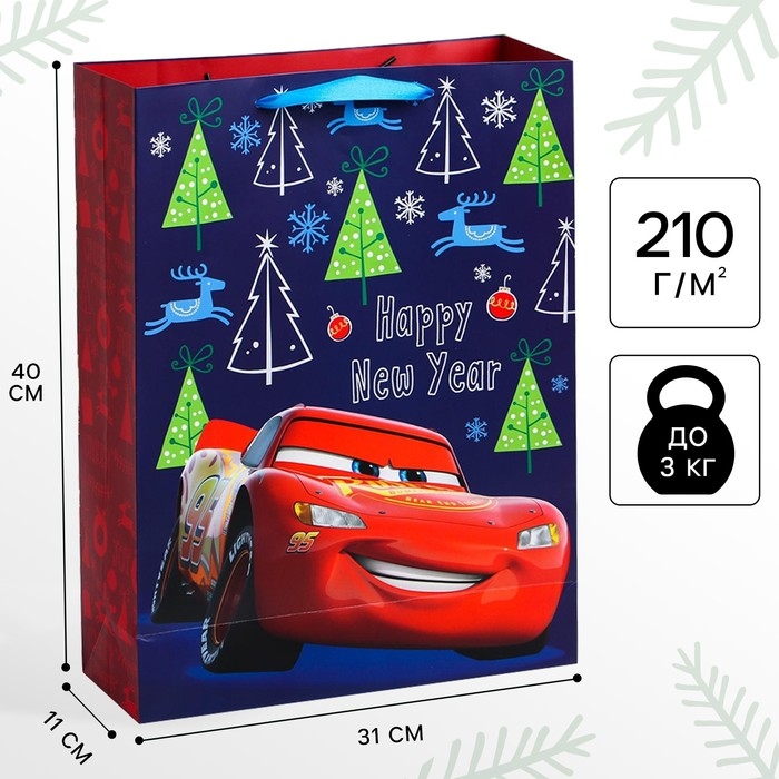 Новый год. Пакет подарочный, 31х40х11 см, упаковка, Тачки