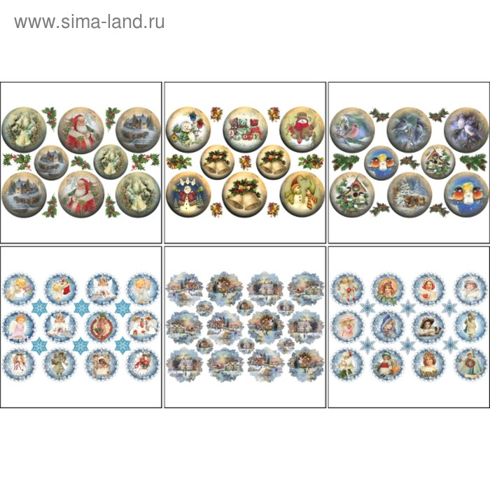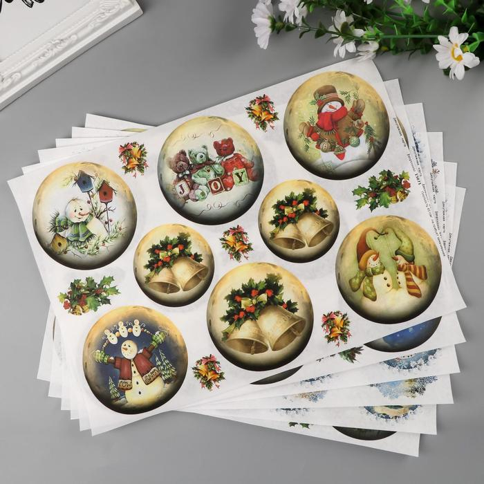 Набор декупажных карт 6 шт "Новогодние шары" А4, 45 г/м2