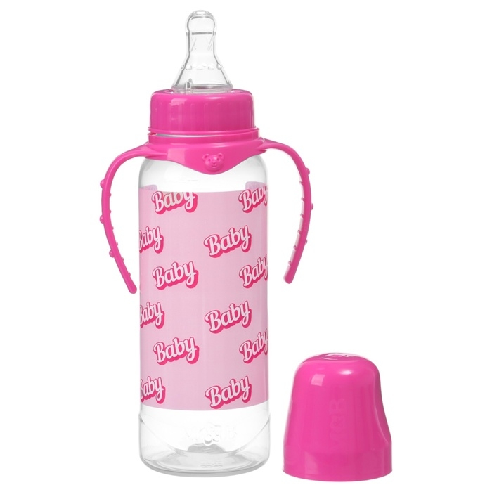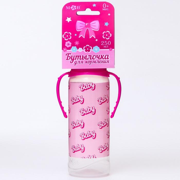Бутылочка для кормления Baby, классическое горло, от 0 мес, 250 мл., цилиндр, с ручками