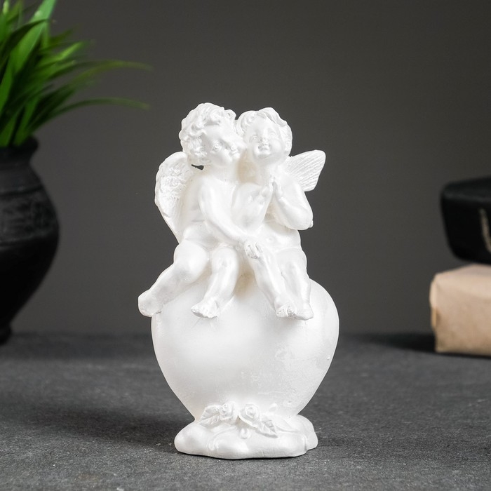 Фигура "Ангелы на сердце" перламутровый, 14х8х6см