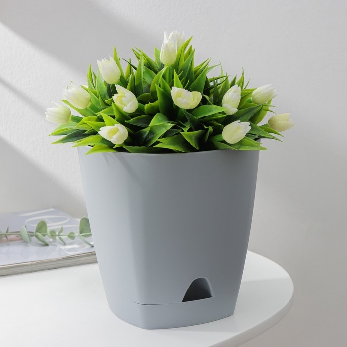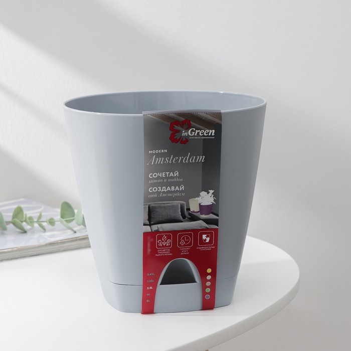 Горшок для цветов с прикорневым поливом Amsterdam, 2,5 л, d=17 см, h=16,5 см, цвет серый