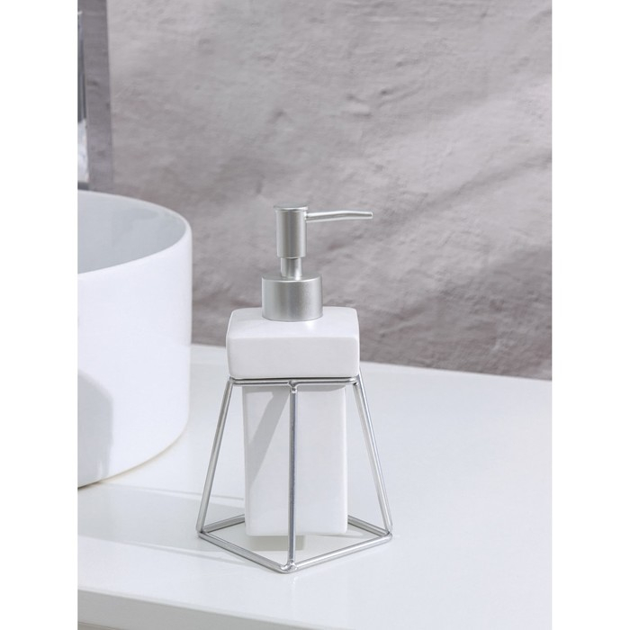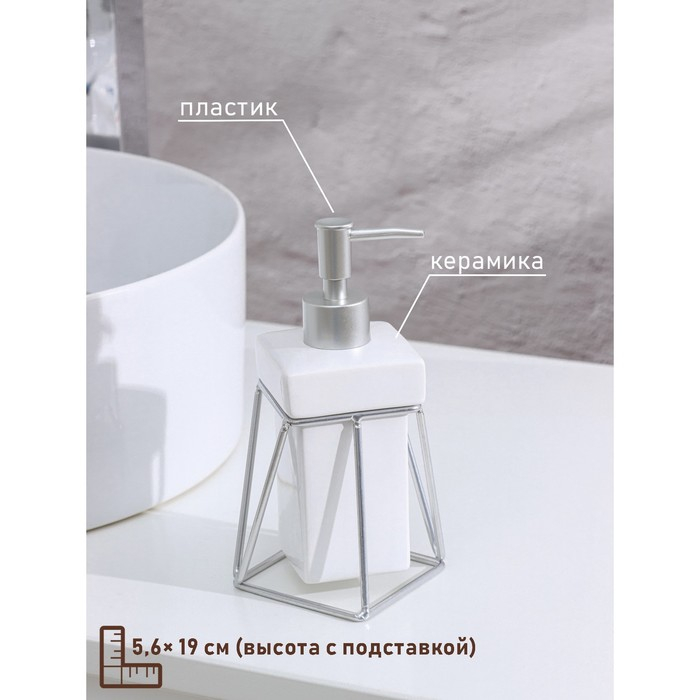 Дозатор для жидкого мыла на подставке SAVANNA «Геометрика», 250 мл, цвет белый