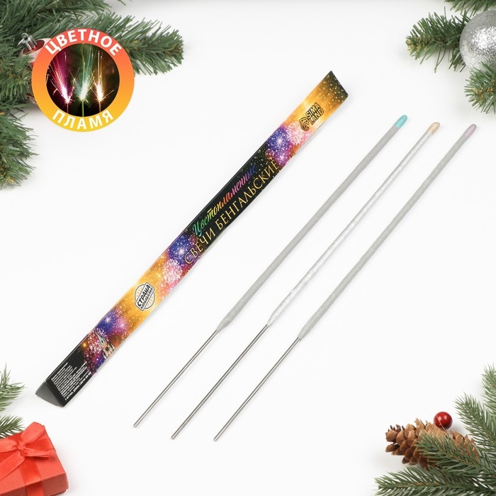 Бенгальские огни, 40 см, 3 штуки, "Цветопламенные", 80 сек