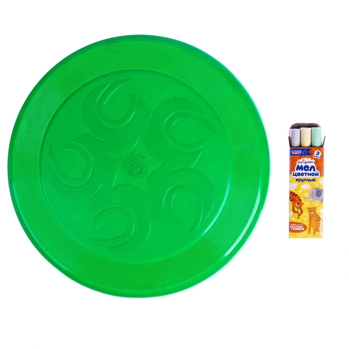 Летающая тарелка, 24 × 24 × 2,5 см, цвет зелёный + мел в подарок