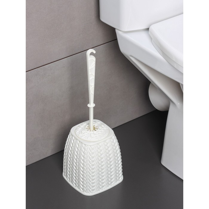 Ёршик для унитаза с подставкой, 16×16×36 см, цвет бежевый