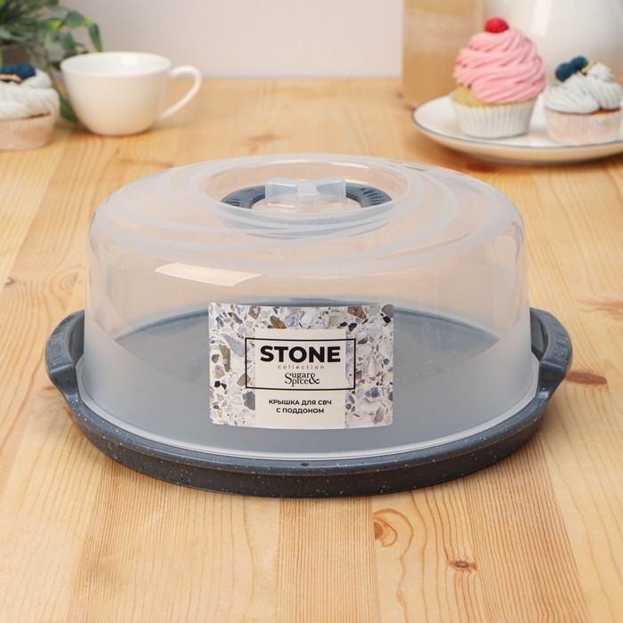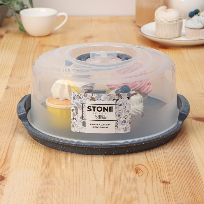 Универсальное блюдо для подачи с крышкой для СВЧ STONE, d=25 см, цвет темный камень