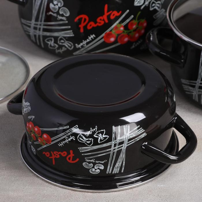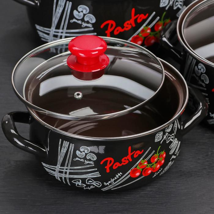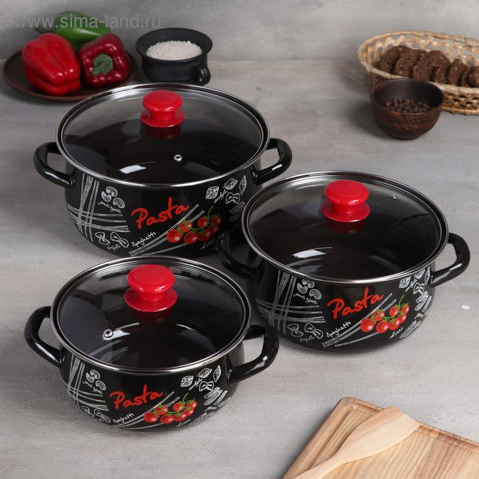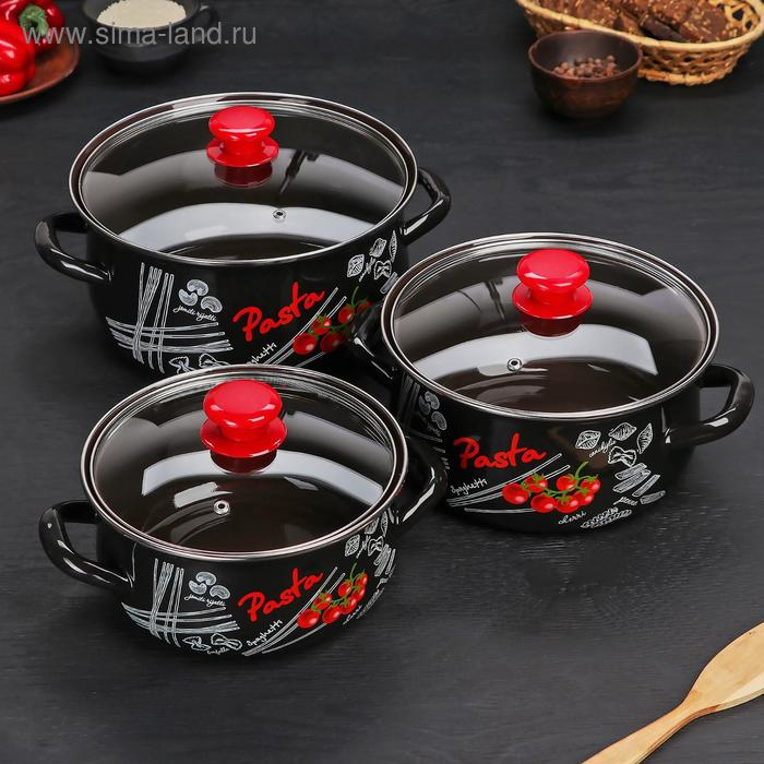 Набор эмалированных кастрюль «Болоньезе», 3 предмета: 2 л, 3 л, 4 л, d=20,5 см, 23 см, 26 см, индукция