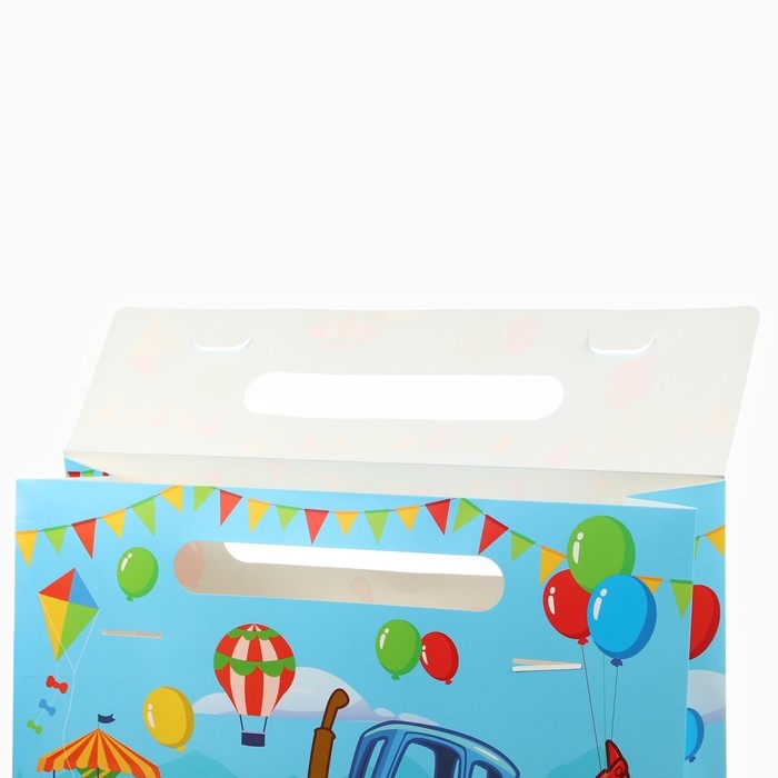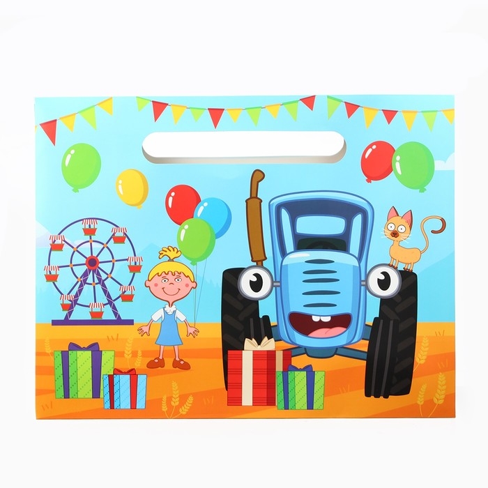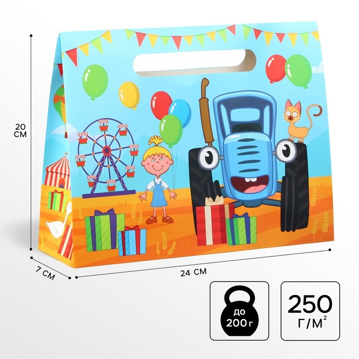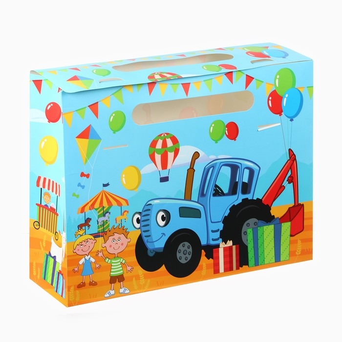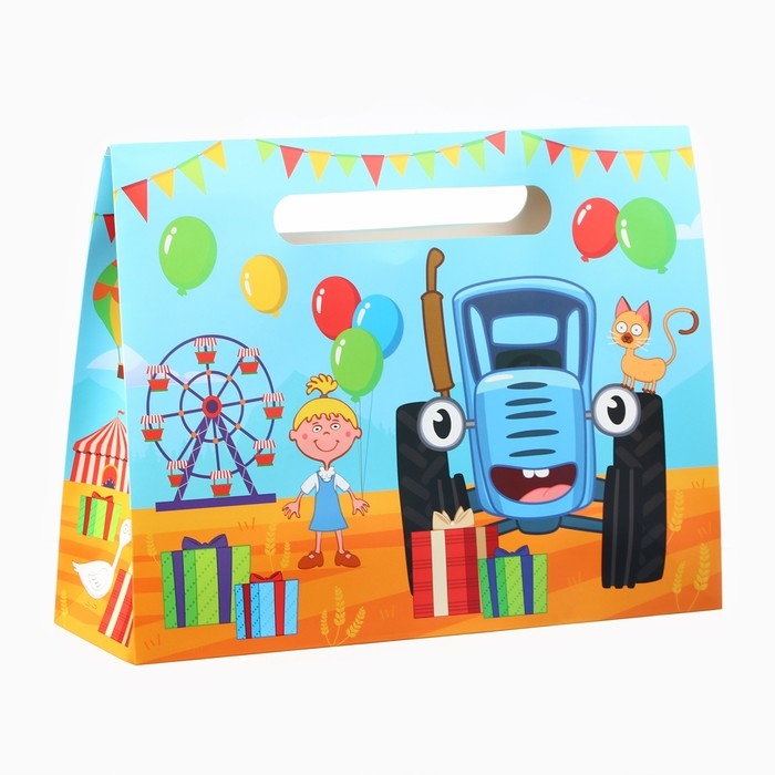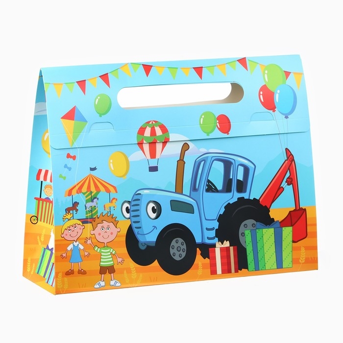 Пакет-коробка для подарка, Синий трактор, 40х30х12 см