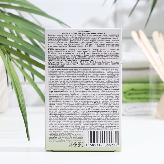 Восковые полоски для депиляции лица Deep Depil, с алоэ вера, 20 шт.