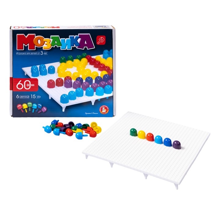 Мозаика круглая, 60 элементов по 15 мм, 6 цветов