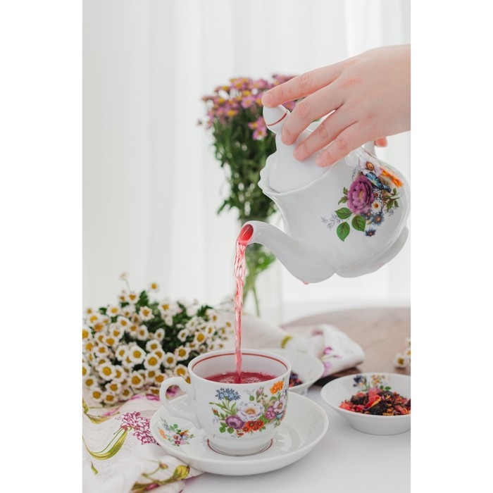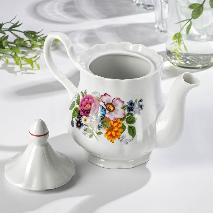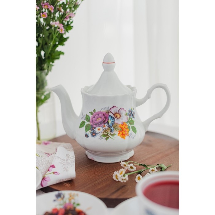Чайник заварочный Добрушский завод «Букет цветов», 800 мл, фарфор, белый