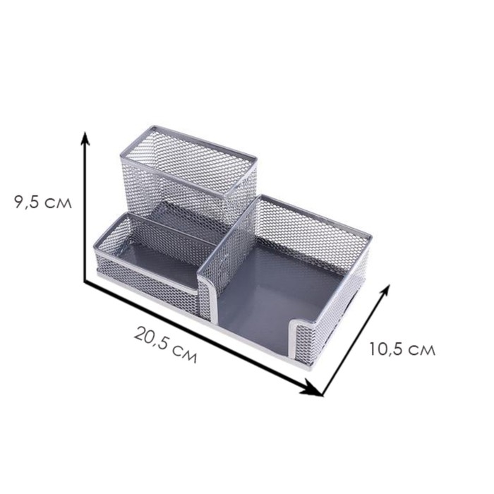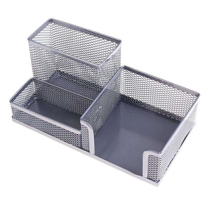 Подставка для канцелярских мелочей, 3 отделения, серая сетка
