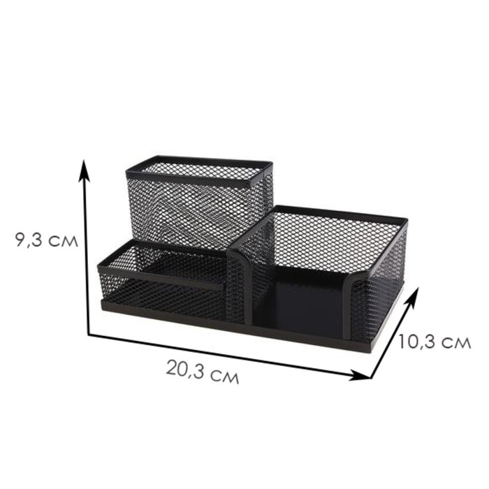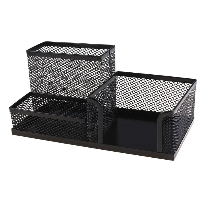 Подставка для канцелярских мелочей 3 отделения, сетка, черная
