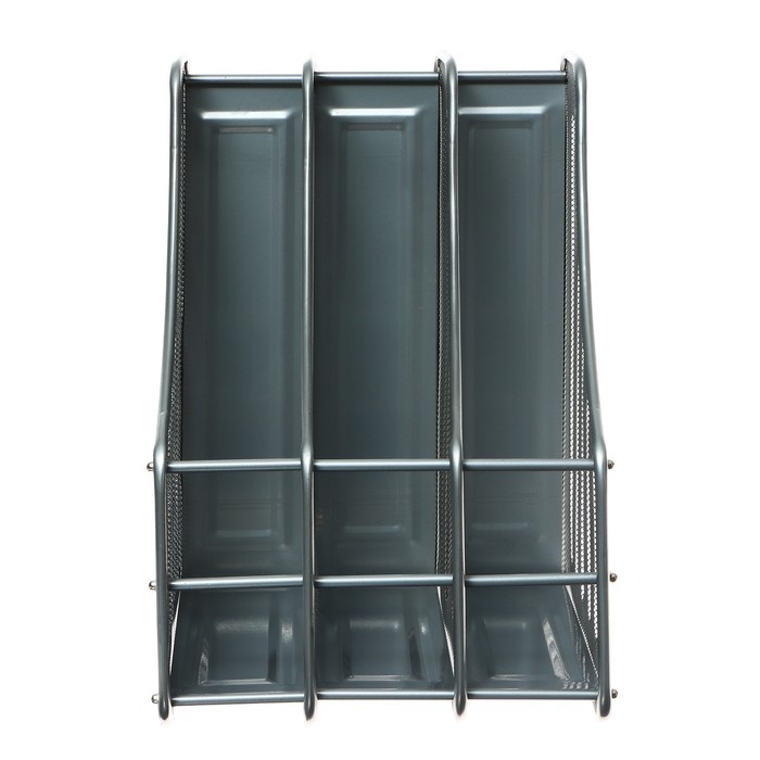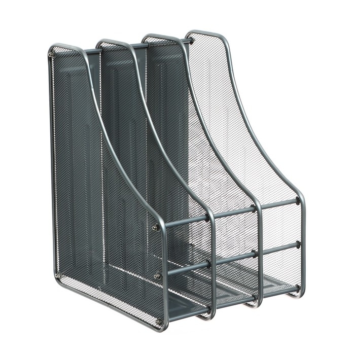 Лоток вертикальный для бумаг, 3 отделения, металлическая сетка, серый