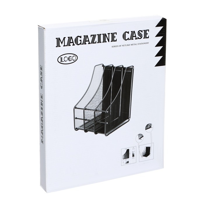 Лоток горизонтальный для бумаг 4 отделения сетка металл, чёрный
