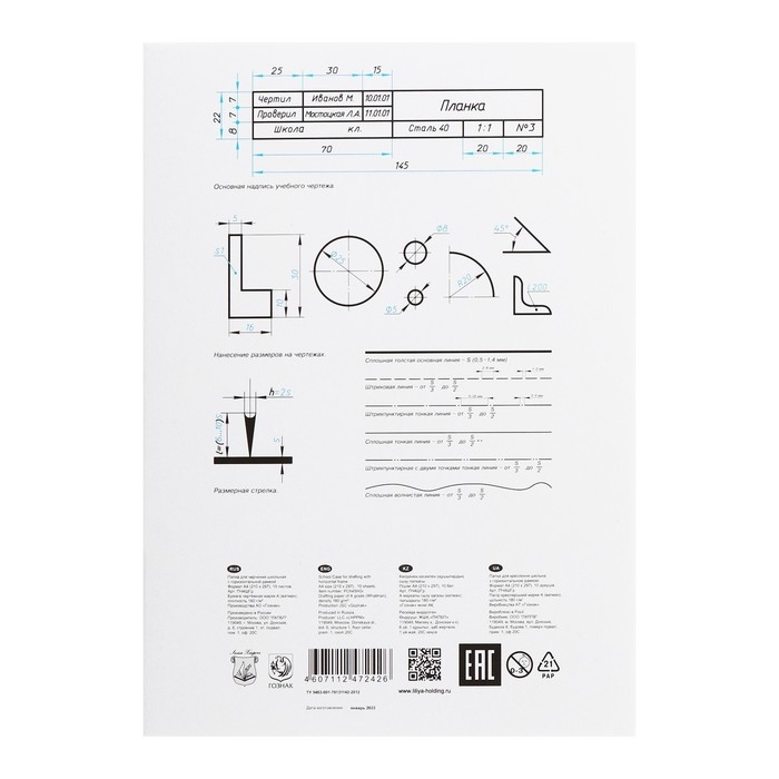 Папка для черчения А4, 10 листов с горизонтальной рамкой, 180 г/м²
