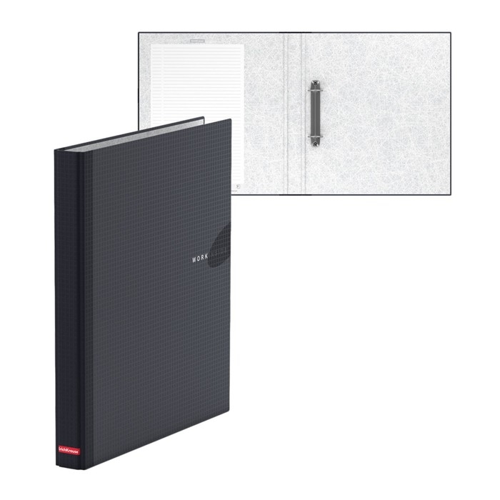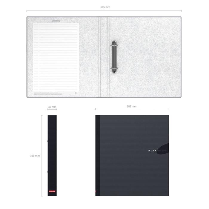 Папка на 2 кольцах А4, корешок 35 мм, ErichKrause Work inside, ламинированный картон 1,75 мм, чёрная, до 250 листов