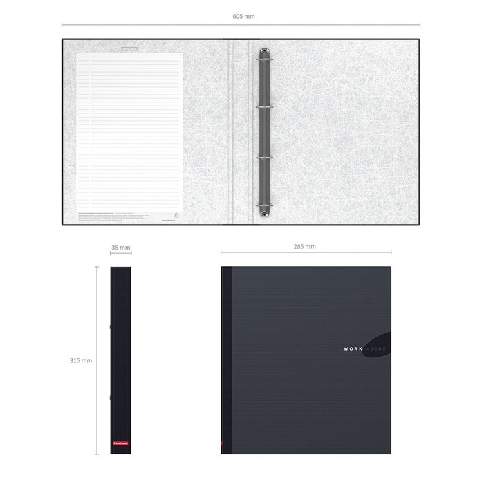 Папка на 4 кольцах А4, ErichKrause Work inside, 35 мм, 1750 мкм, черная