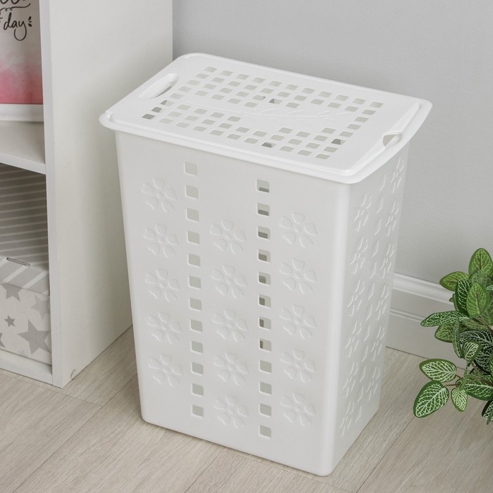 Корзина бельевая с крышкой «Виолетта», 30 л, 36×26,5×47,5 см, цвет белый