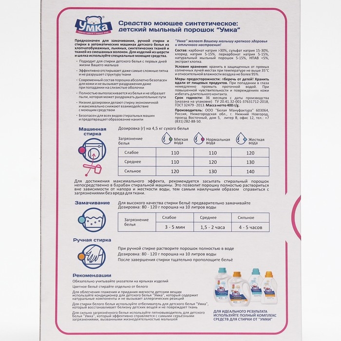 Стиральный порошок "Умка", универсальный, для детского белья, 0+, 400 г