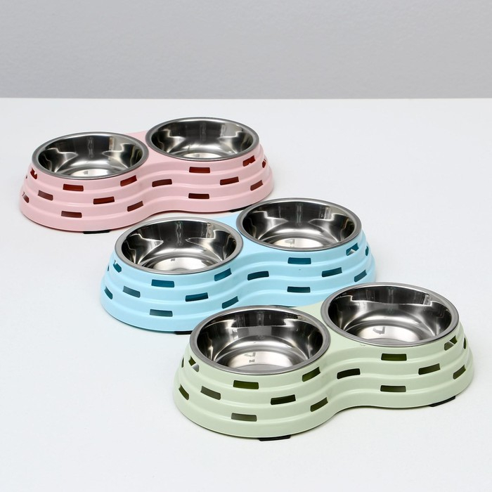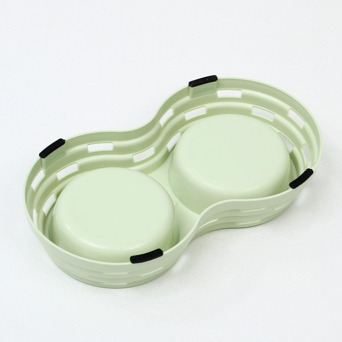 Миска металлическая двойная на пластиковом основании 2 х 160 мл, 25 х 14 х 5 см, зелёная