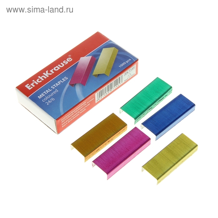 Скобы для степлера ErichKrause №24/6, цветные, 1000 штук