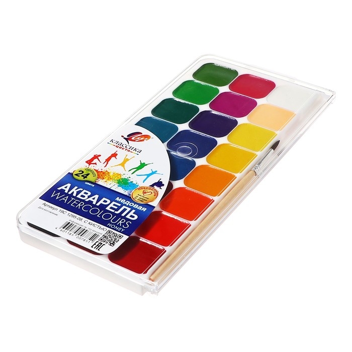 Краски акварельные медовые полусухие изготовлены на основе натуральных природных компонентов и высококачественных пигментов. Акварель предназначена для детского творчества и различных живописных работ.
