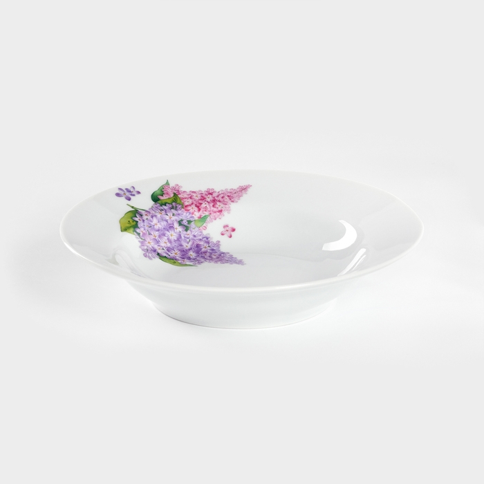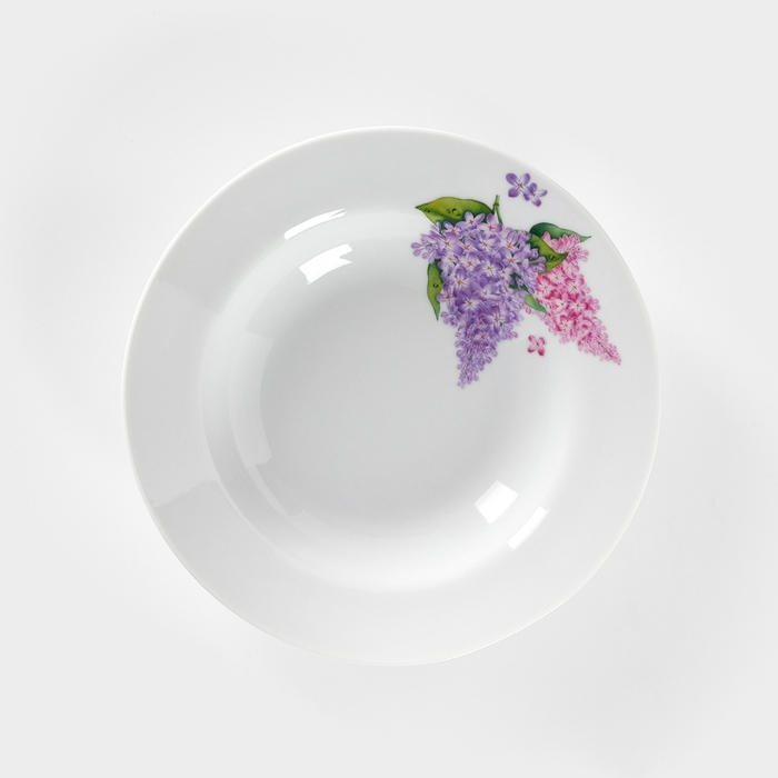 Тарелка фарфоровая глубокая «Сирень», 250 мл, d=20 см, белая
