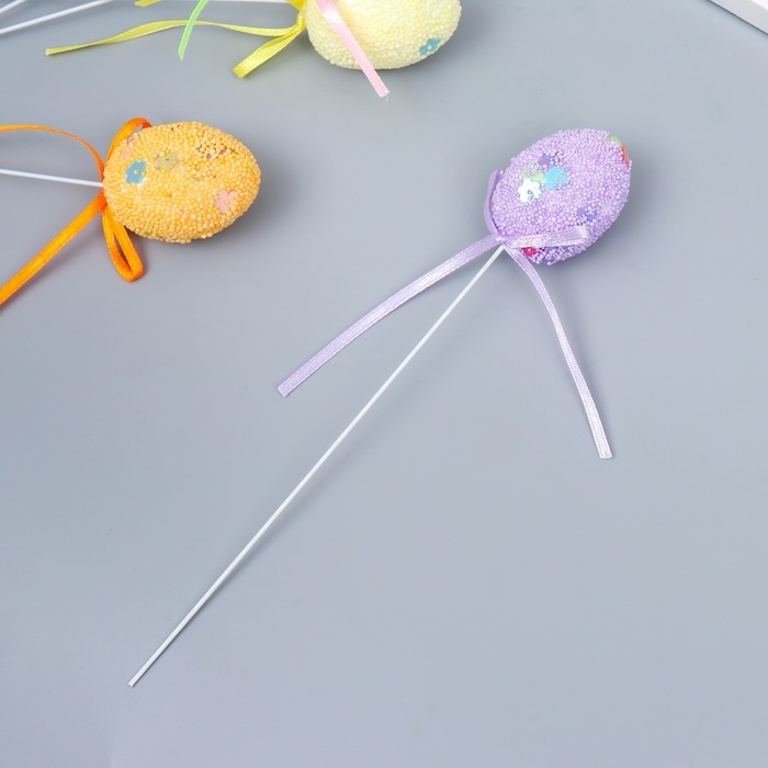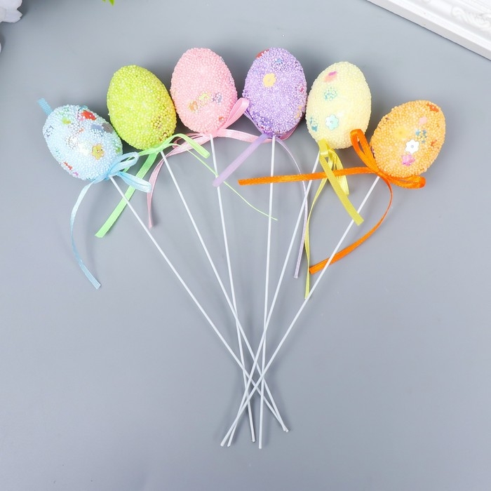Декор пасхальный на палочке "Яйцо посыпка цветы" набор 6 шт яйцо 3х4 см 19х3х3 см