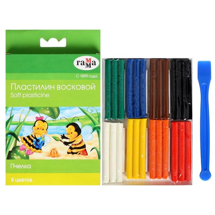 Пластилин мягкий (восковой), 8 цветов, 120 г, Гамма "Пчелка", со стеком